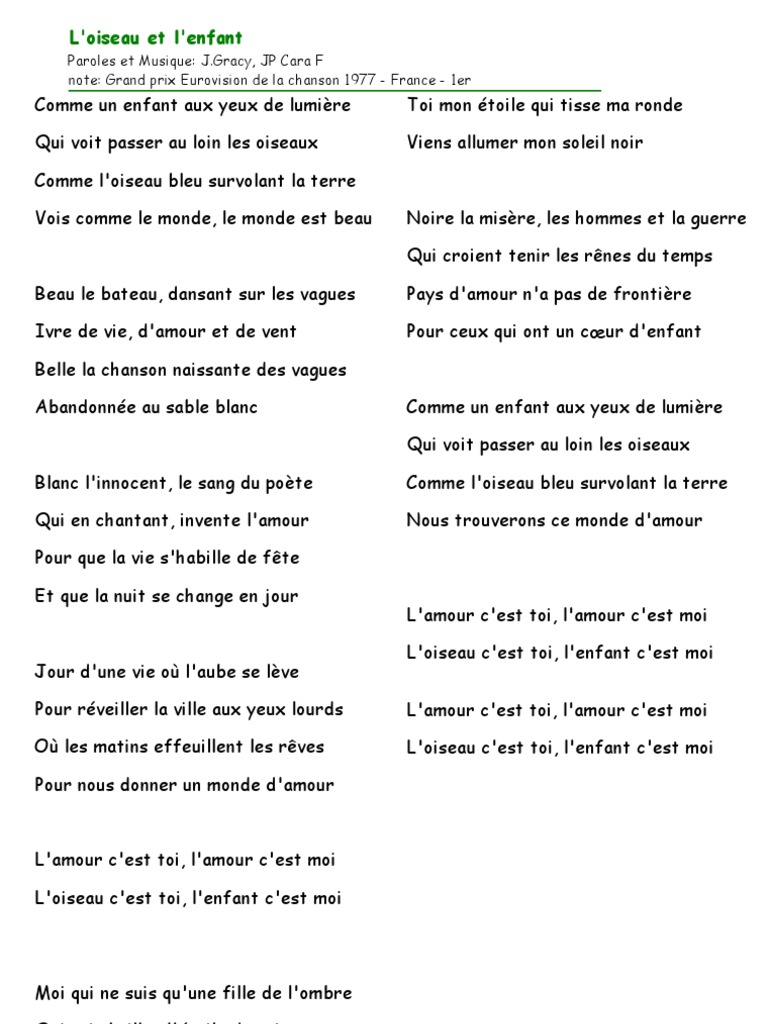 Parole De L Oiseau Bleu. Le meilleur, de façon totalement subjective, orientée et partiale, de ce qu'on voit sur le réseau à. Le soir de noël, la fée bérylune leur apparaît et leur demande d'aller chercher l'oiseau bleu seul capable de guérir sa petite fille. Venez ici, venez à moi, venez ici. Date de la publication de la piece: Ils vivaient dans une grande forêt avec leur maman bien souffrante sans le sou, sans espoir de la soigner ils la voyaient déjà mourante.